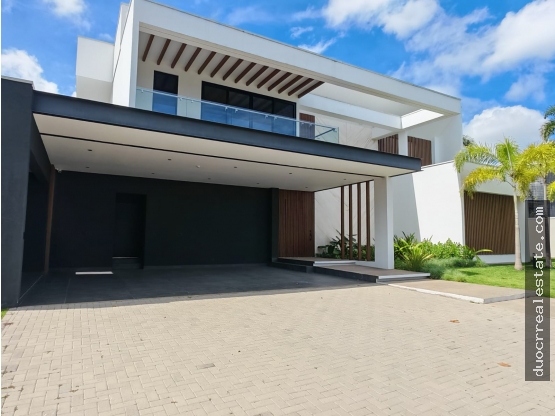 Destaca por sus acabados de alta calidad, cocina moderna, habitaciones en suite con walk-in closet, oficina, áreas sociales amplias, y piscina privada. Además, cuenta con garaje para tres vehículos, bodega, previstas para carro eléctrico y paneles solares, y sistema de riego.